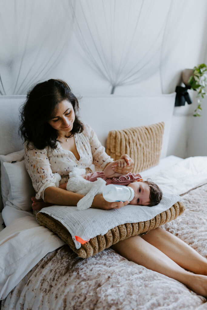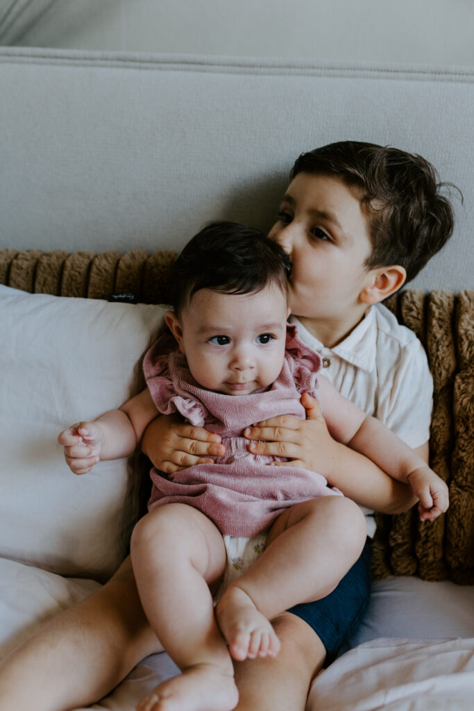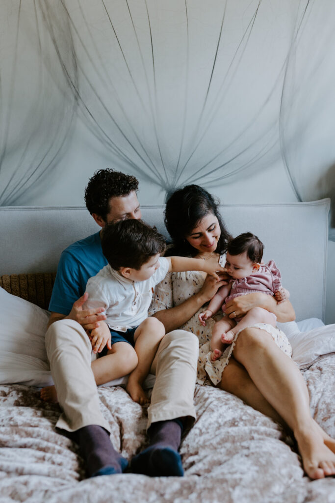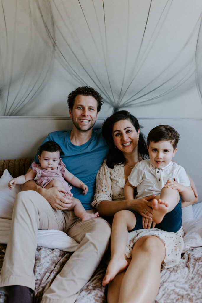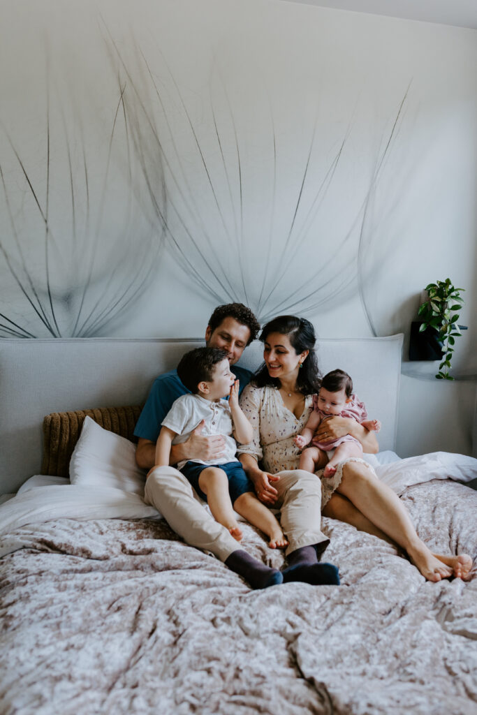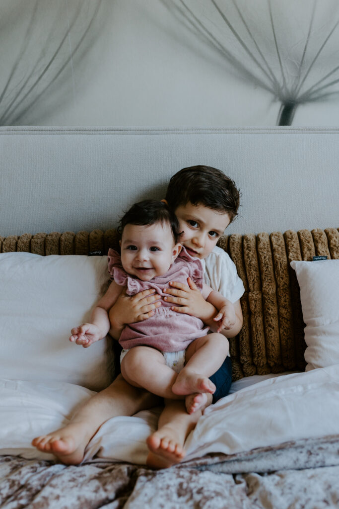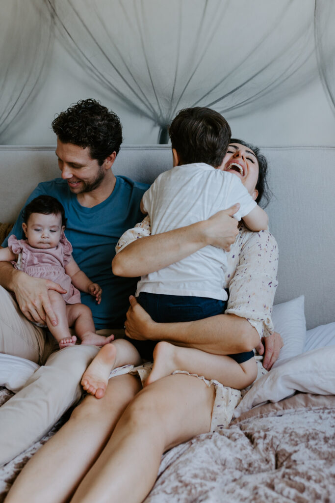 De fotoshoot was heerlijk ontspannen. We begonnen de gezinsshoot lekker op bed, met papa, mama, Liam & Sophie. Liam is gek op zijn zusje en wilde heel graag met zijn zusje op de foto! Daarna lekker met het hele gezin knuffelen op het grote bed! Eén groot feest!